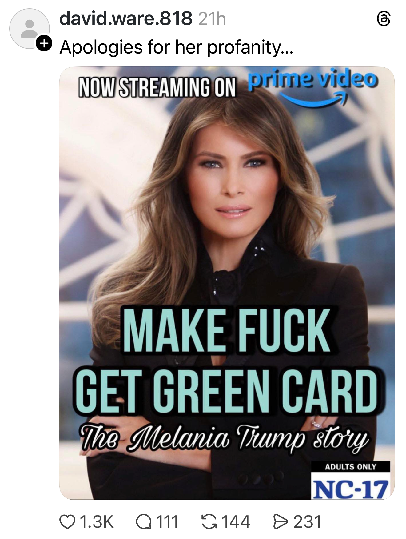 Now talking generally, not merely of Melania; One of the most pathetic aspects of males using this insult is the lack of self-reflection it implies; if men like to slag off women who do sex-work as ipso facto being "less", why do they never reflect on the even worse logical statement it makes of themselves within that frame of logic? ... fucken losers who can only get laid by paying a woman for it, rather than being a sufficiently decent person who might then attract "worthy" [sic] women. So many men are fucken shitheads, & i really am shocked you used this pejorative; i thought you were much better. 😡