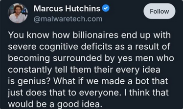 Whoa there. That's one hell of a way to explain the danger of so-called #AI to everybody: "You don't want billionaire brain, do you?