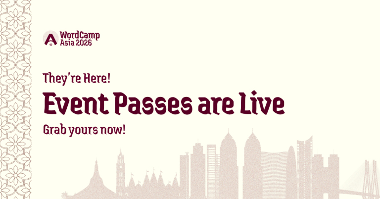 Event passes are now available for WordCamp Asia 2026, happening in Mumbai, India, from 9–11 April 2026. Join thousands from the global WordPress community for three days of learning, collaboration…