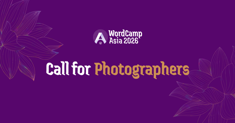 Apply by February 10, 2026: https://asia.wordcamp.org/2026/call-for-photographers/