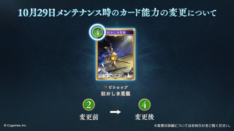 「シャドバWB」、ビショップ「狂おしき恩寵」ナーフ。コスト2から4へ変更クレストビショップの脱法恩寵に影響大か