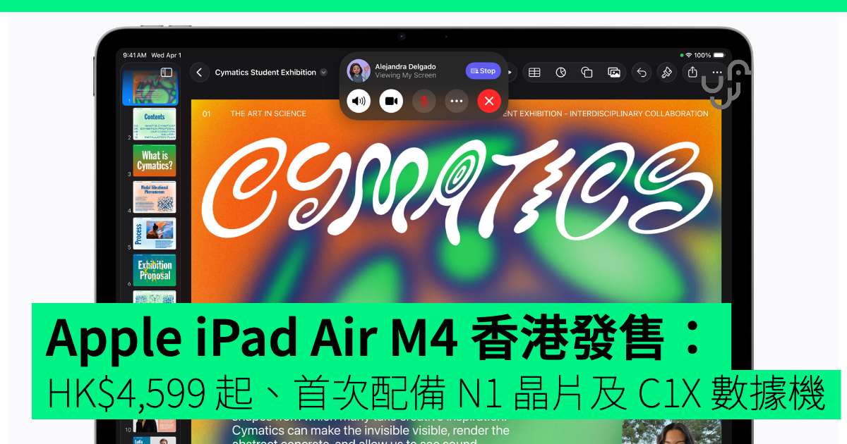Apple iPad Air M4 香港發售:HK$4,599 起、首次配備 N1 晶片及 C1X 數據機