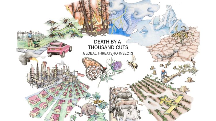 Death by a thousand cuts: Global threats to insect diversity. Stressors from 10 o’clock to 3 o’clock anchor to climate change.
