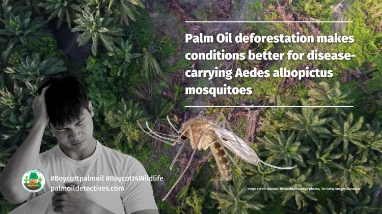 Aedes albopictus is known to transmit pathogens and viruses, such as the Yellow Fever, Dengue Fever, Chikungunya fever and Usutu virus. The study suggests careful policy-making and planning is urgently needed to assess how we use land, balancing the need for palm oil farming.